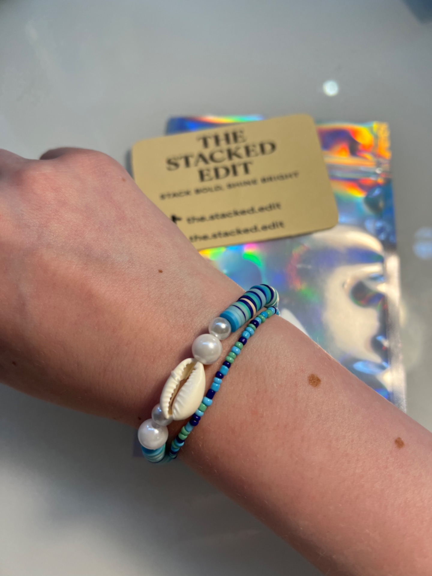 Two bracelets, One sea bead and one clay bead, ocean themed.